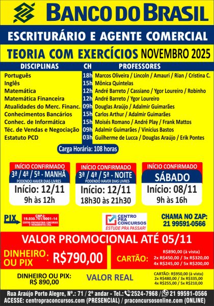 INÍCIO: 12/11 (3ª, 4ª E 5ª)